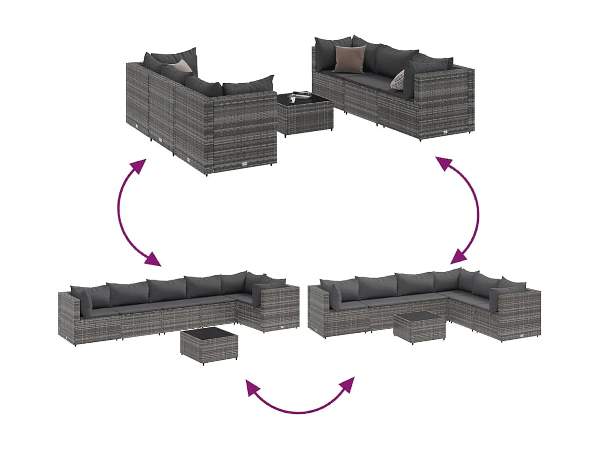 Salon de jardin 7 pcs avec coussins Gris Résine tressée