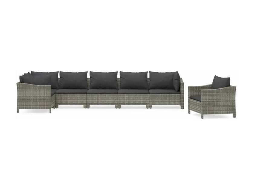 Salon de jardin 7 pcs avec coussins Gris Résine tressée