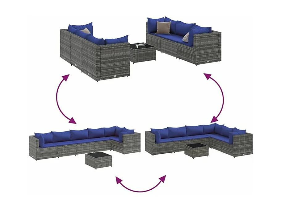 Salon de jardin 7 pcs avec coussins Gris Résine tressée