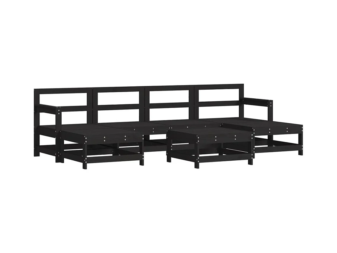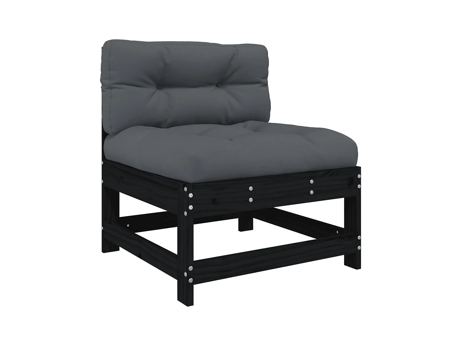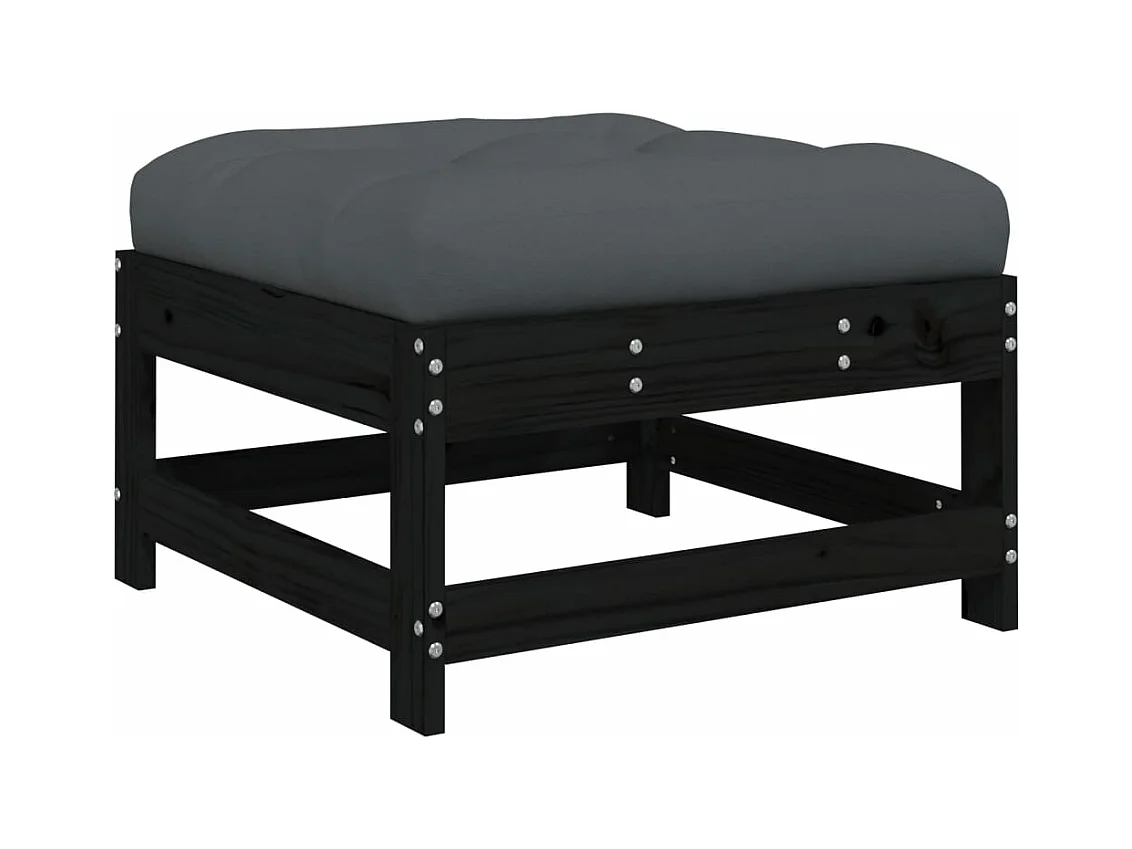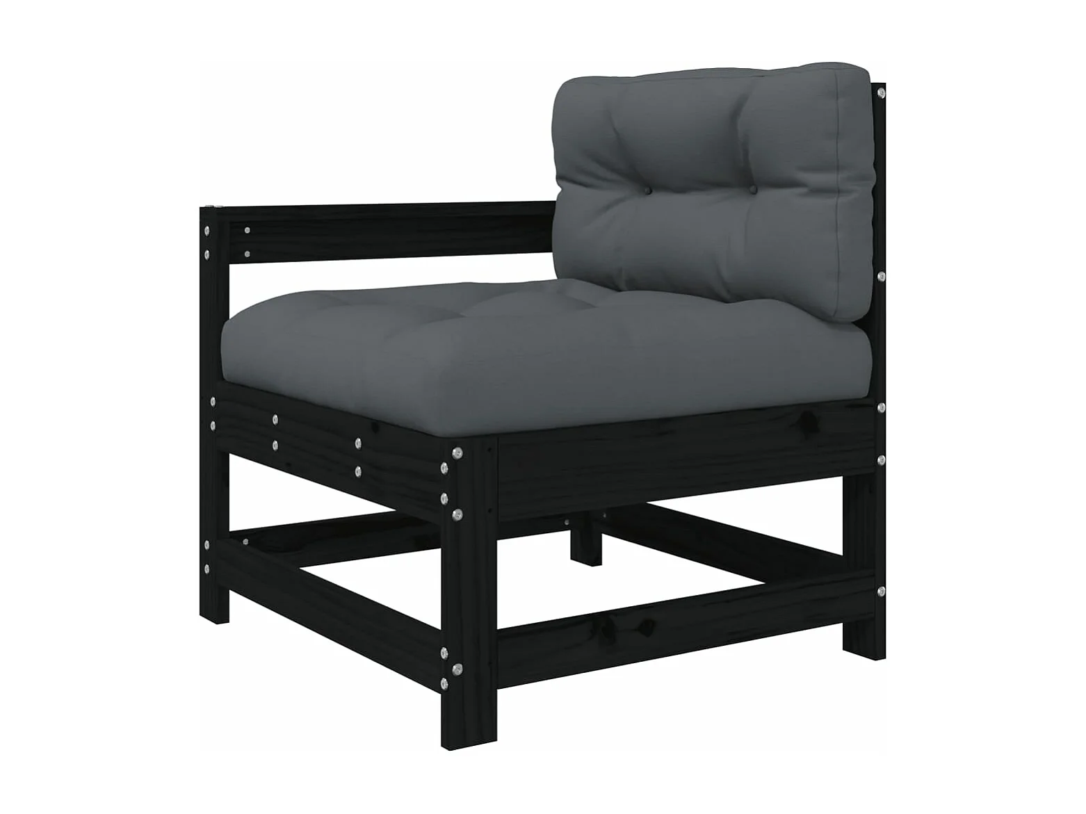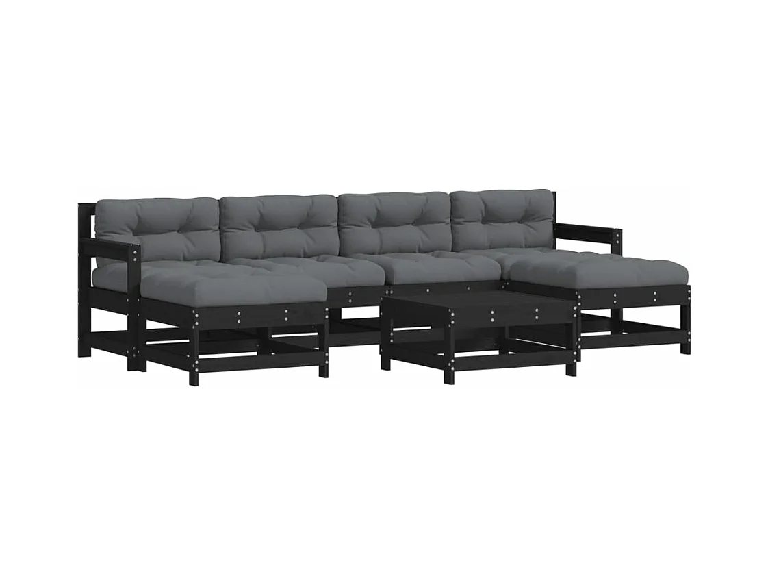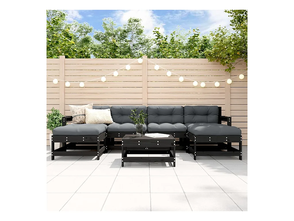 Salon de jardin 7 pcs avec coussins noir bois massif