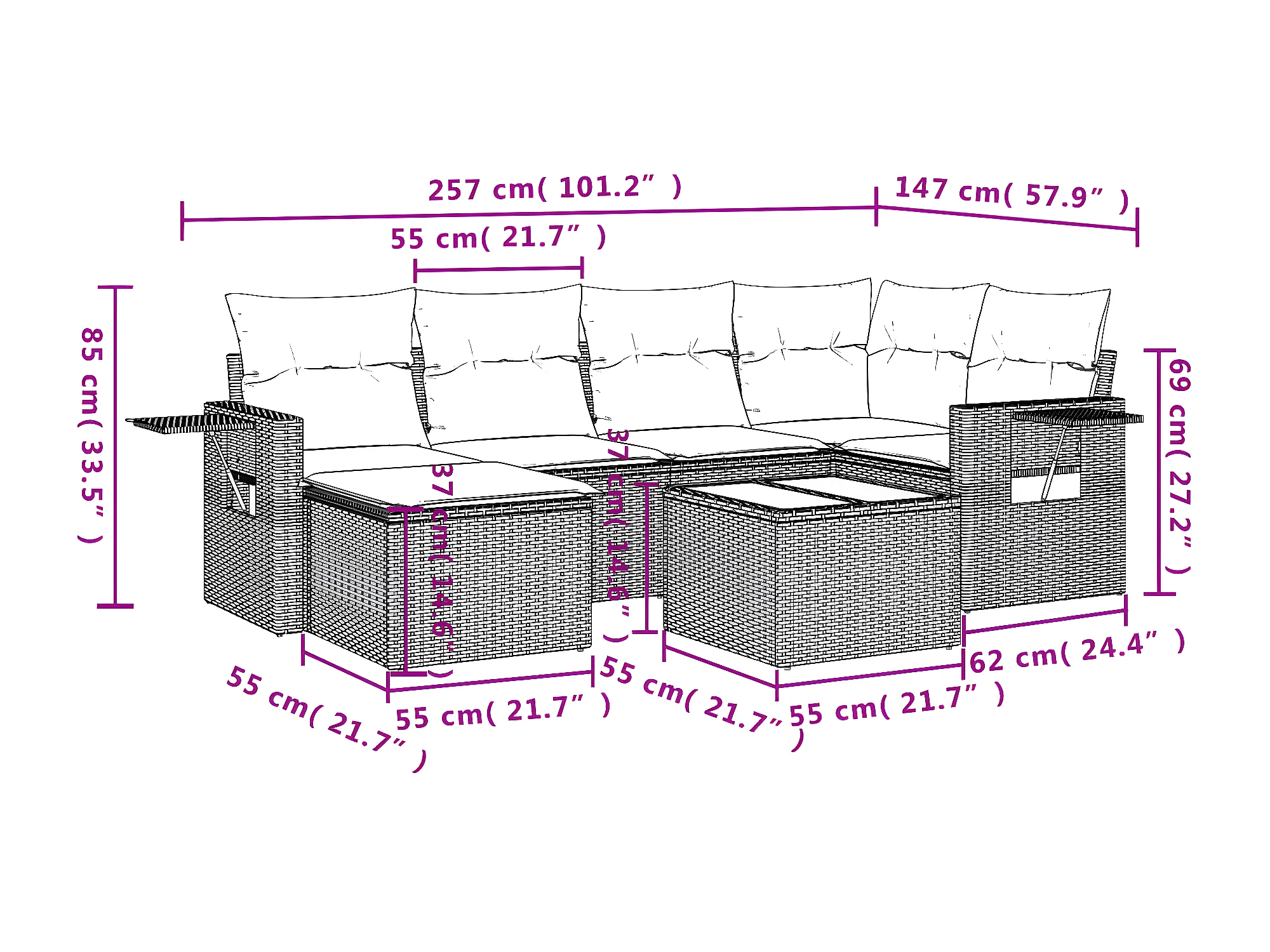 Salon de jardin 7 pcs avec coussins noir résine tressée