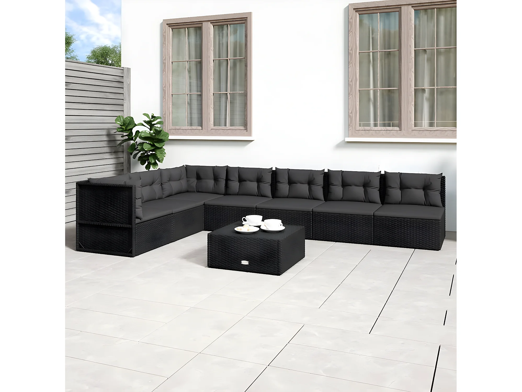 Salon de jardin 7 pcs avec coussins Noir Résine tressée