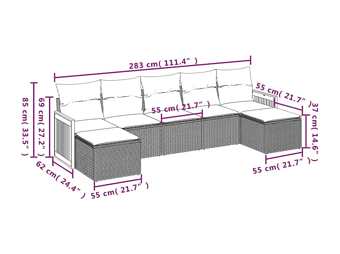 Salon de jardin 7 pcs avec coussins noir résine tressée