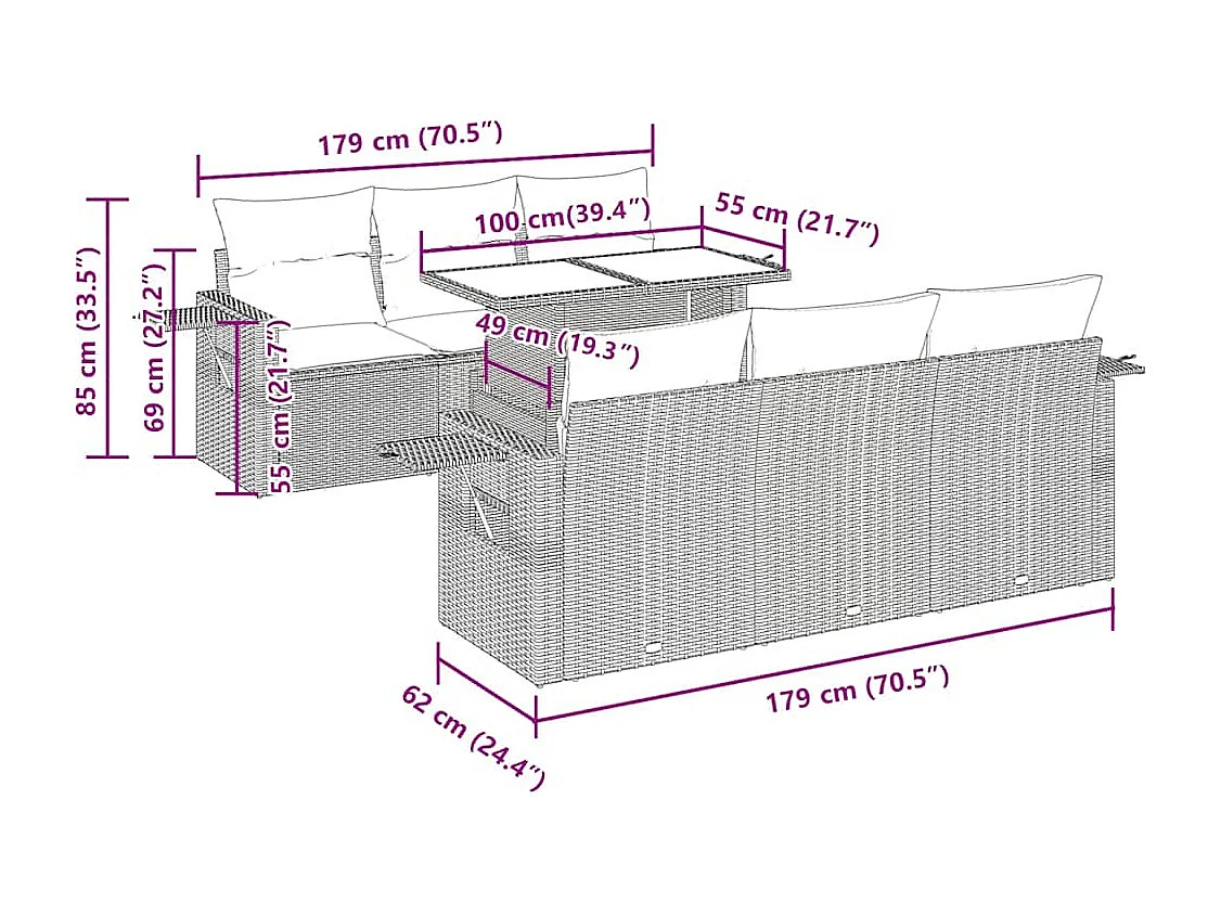 Salon de jardin 7 pcs avec coussins noir résine tressée