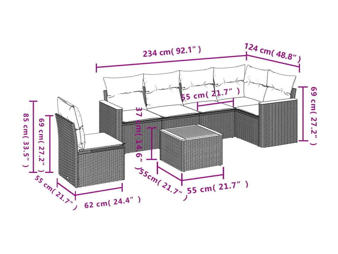 Salon de jardin 7 pcs avec coussins noir résine tressée