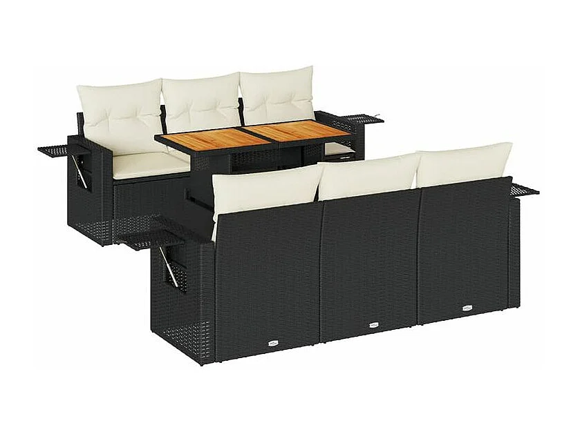 Salon de jardin 7 pcs avec coussins noir résine tressée