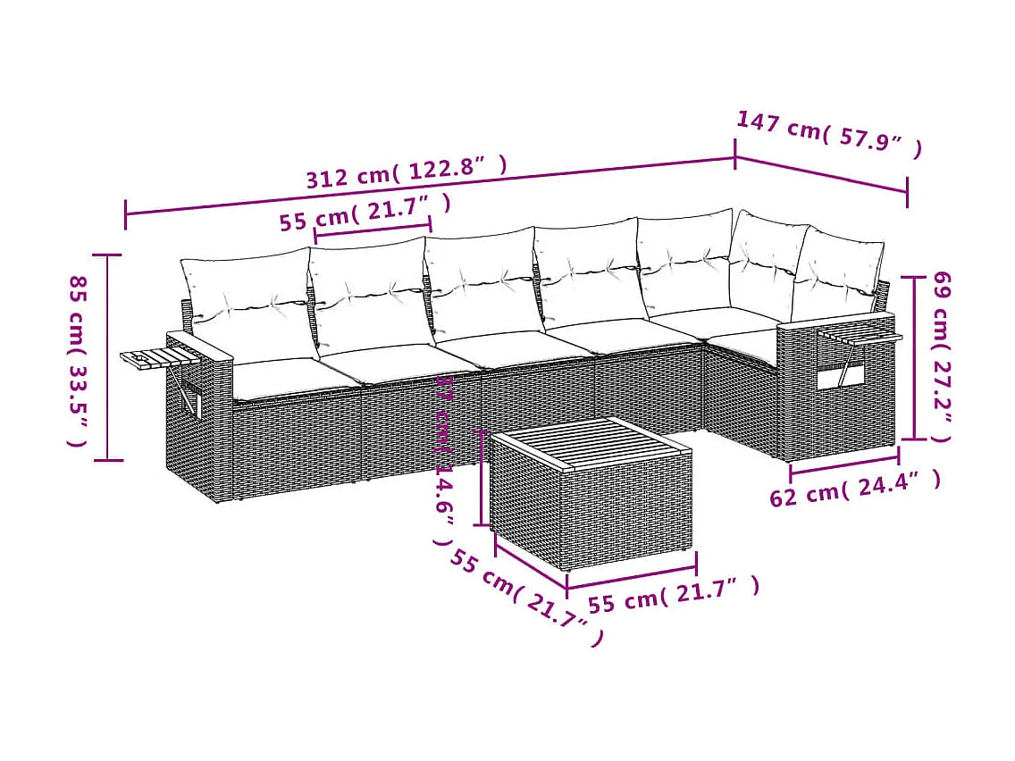 Salon de jardin 7 pcs avec coussins noir résine tressée