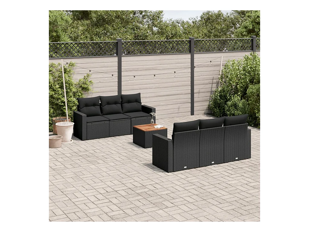 Salon de jardin 7 pcs avec coussins noir résine tressée