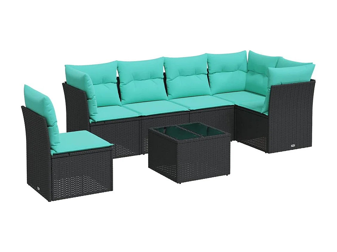 Salon de jardin 7 pcs avec coussins noir résine tressée