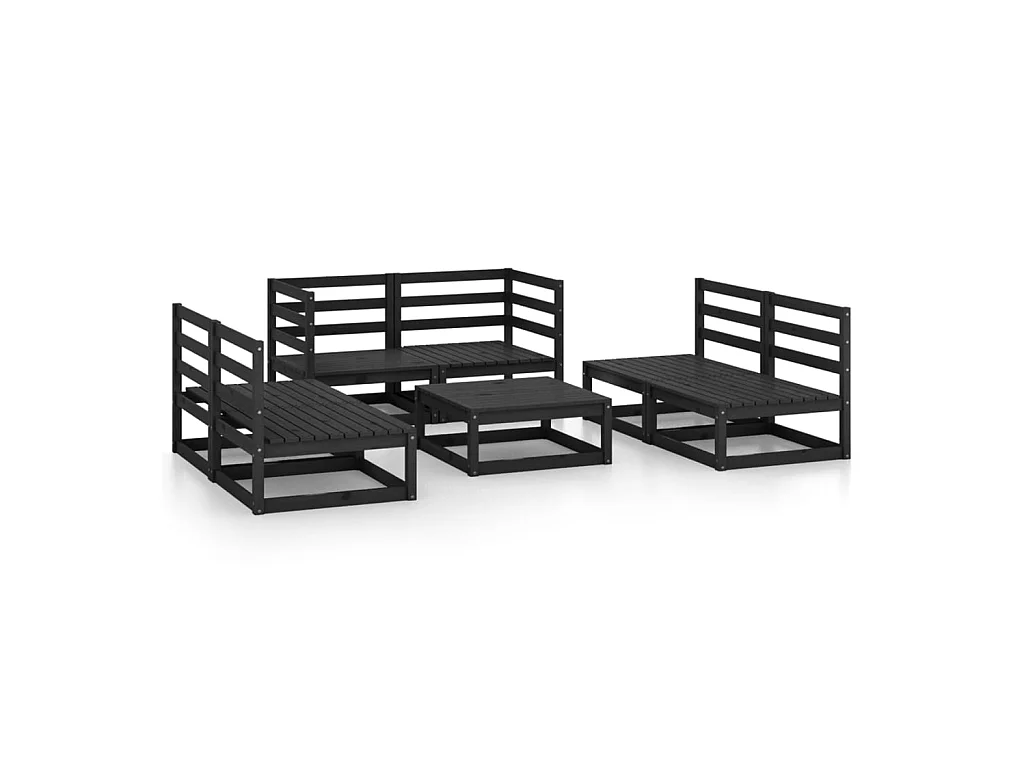 Salon de jardin 7 pcs Noir Bois de pin massif 6