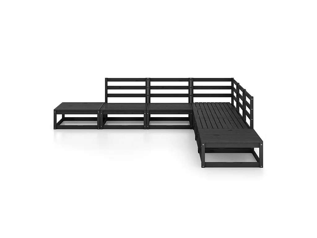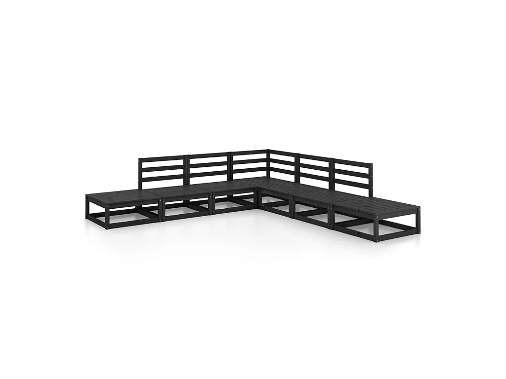 Salon de jardin 7 pcs Noir Bois de pin massif 9