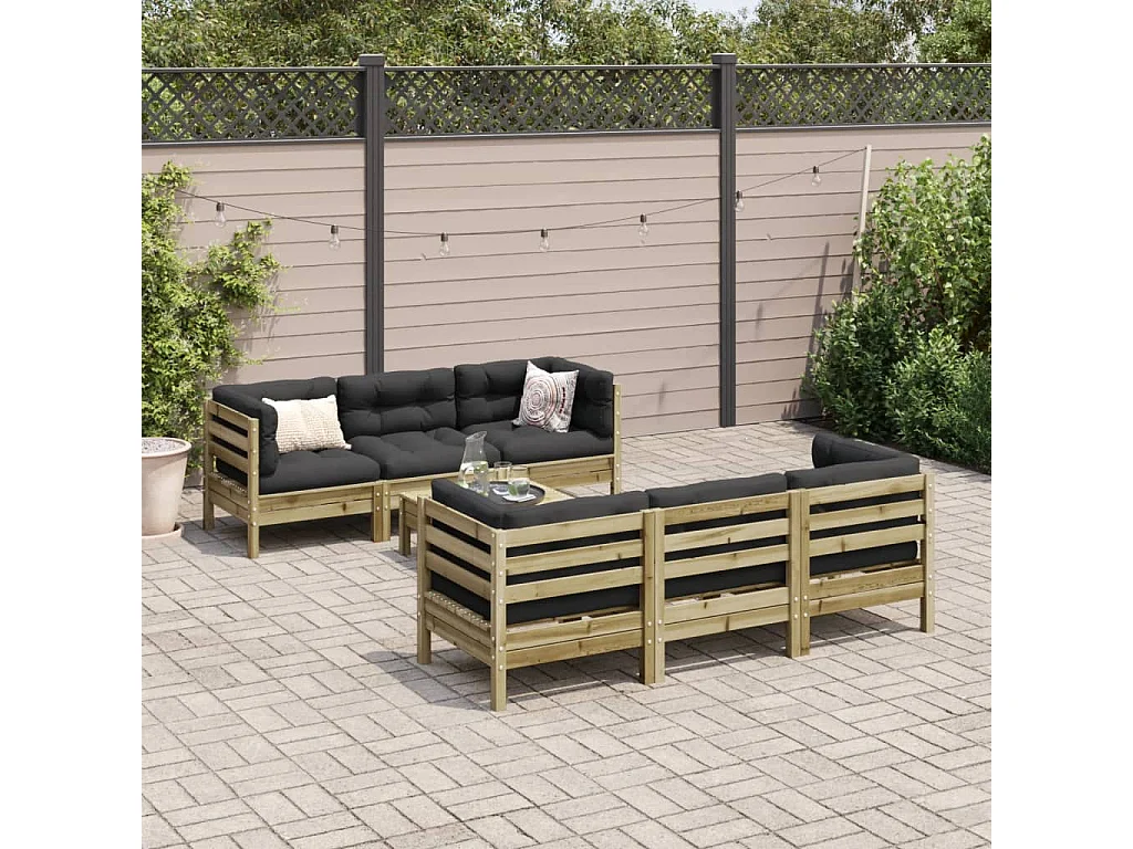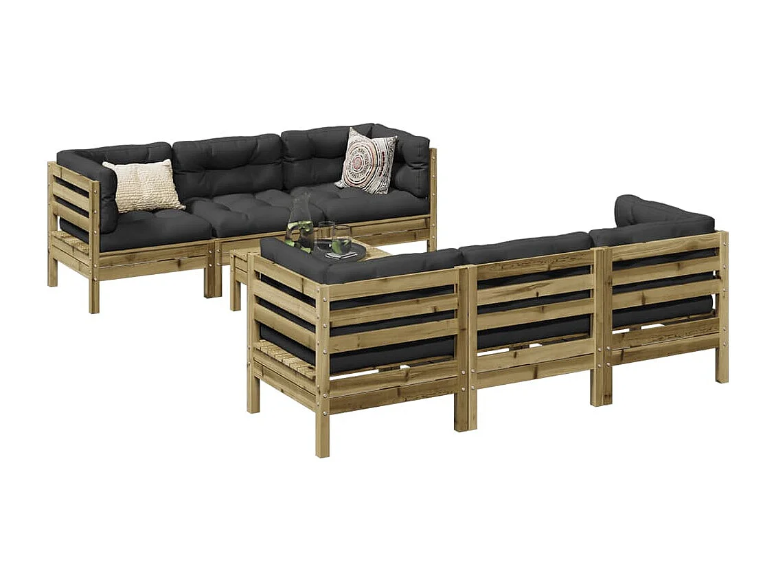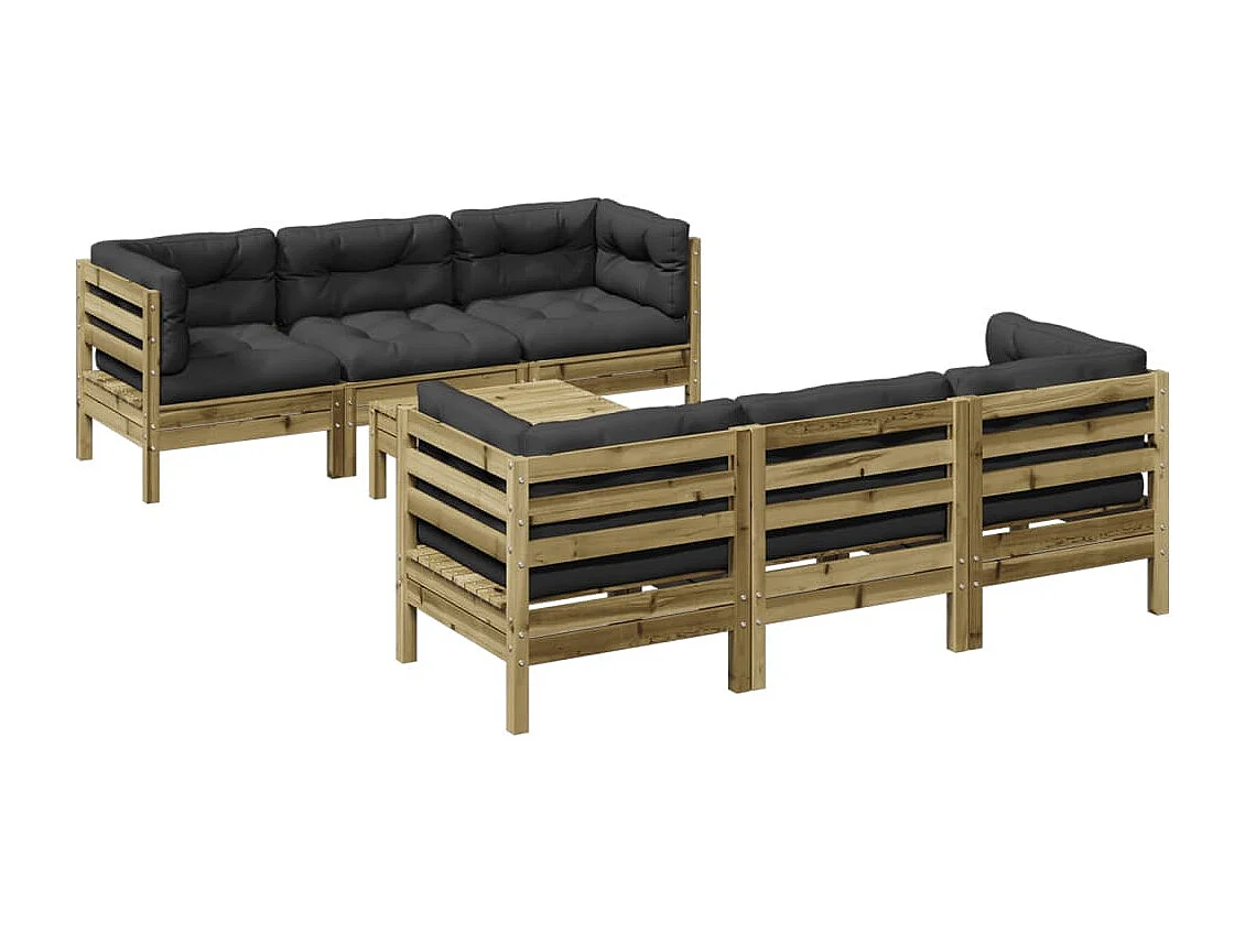 Salon de jardin 7 pièces avec coussins bois de pin imprégné