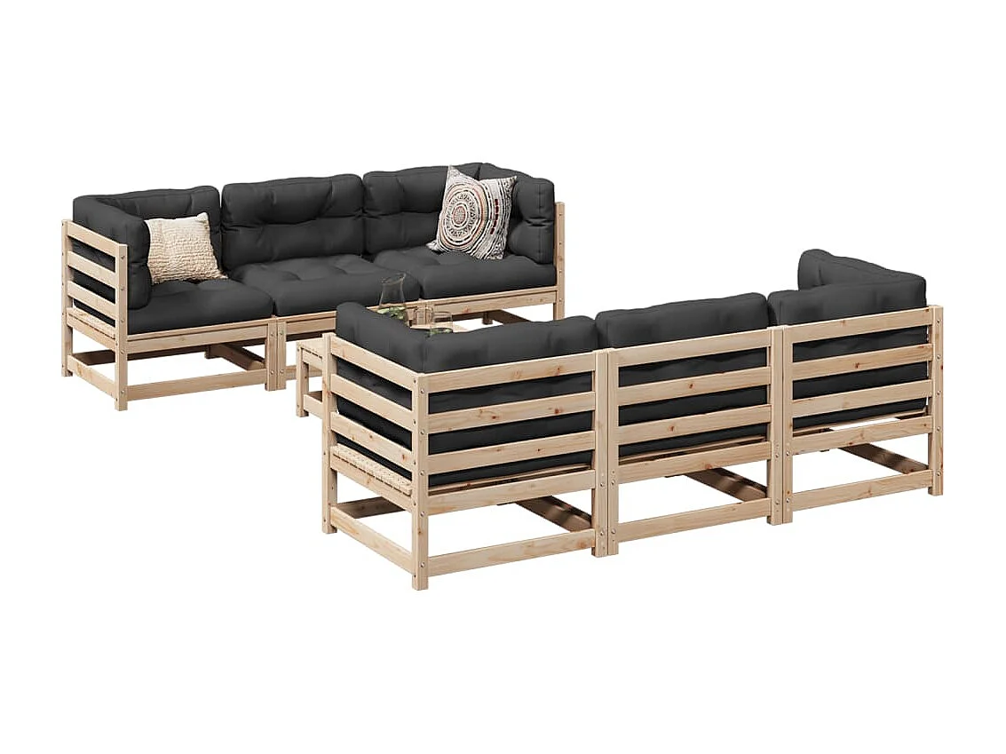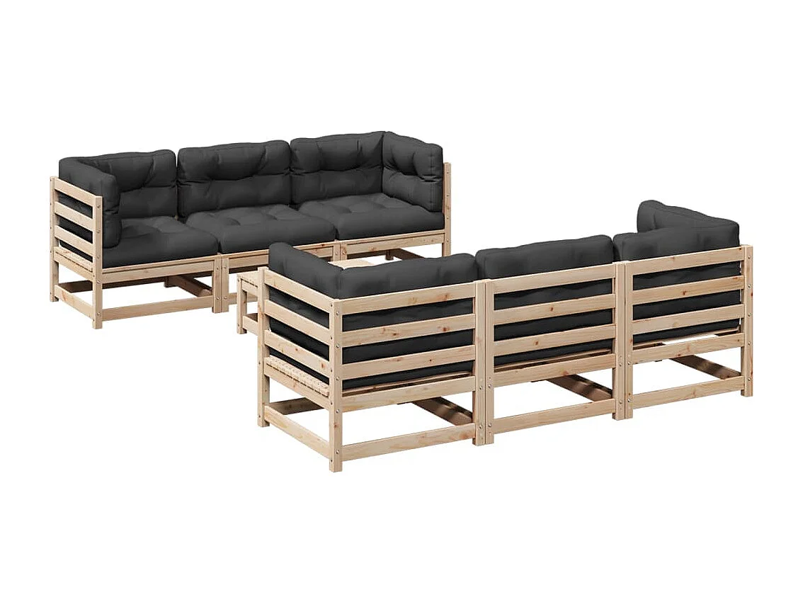 Salon de jardin 7 pièces avec coussins bois de pin massif