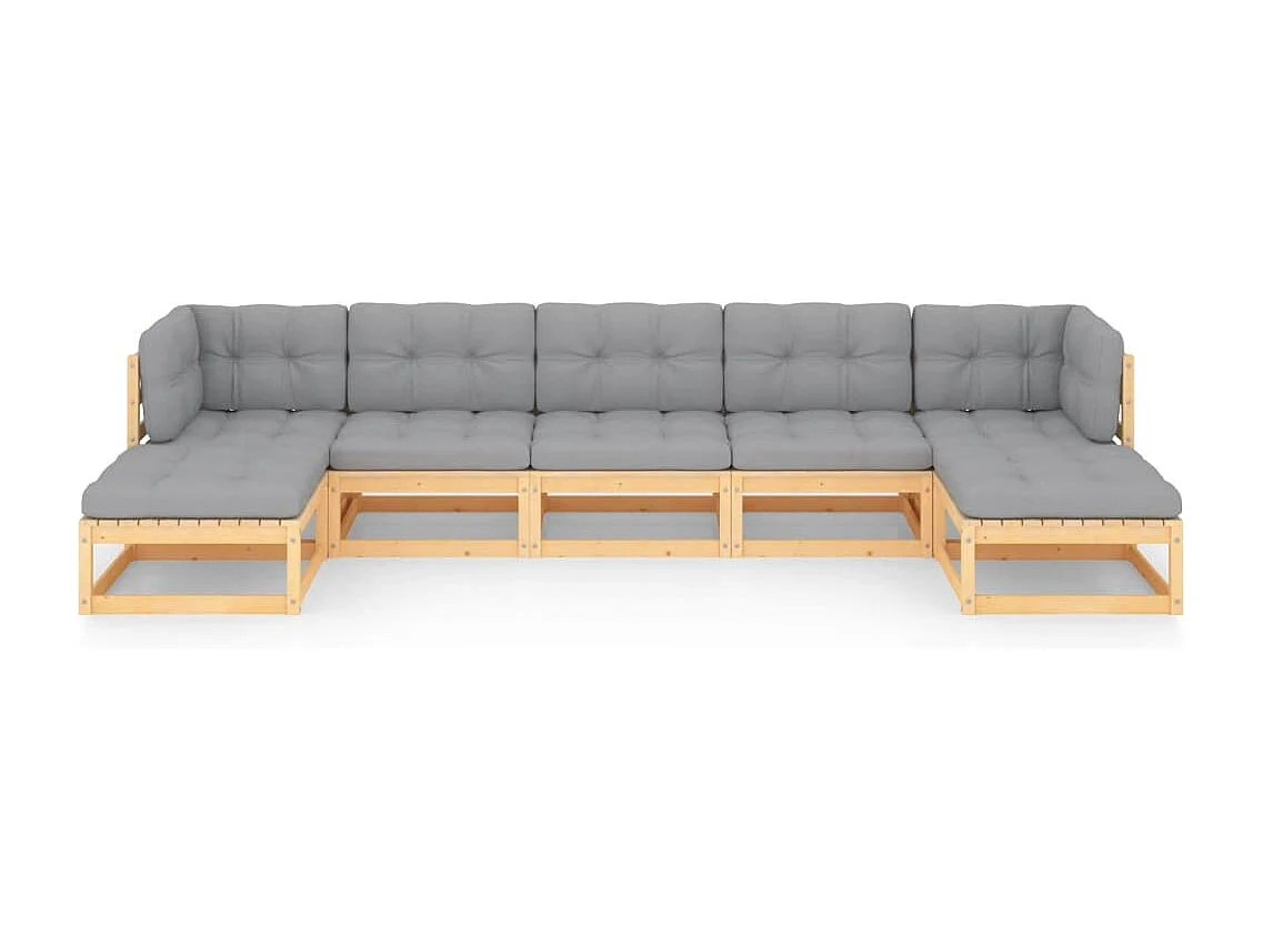Salon de jardin 7 pièces avec coussins Bois de pin massif