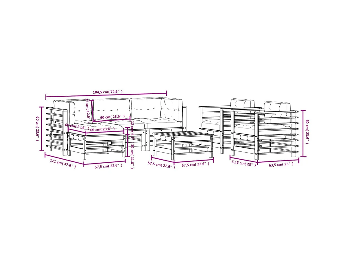 Salon de jardin 7 pièces avec coussins bois massif douglas