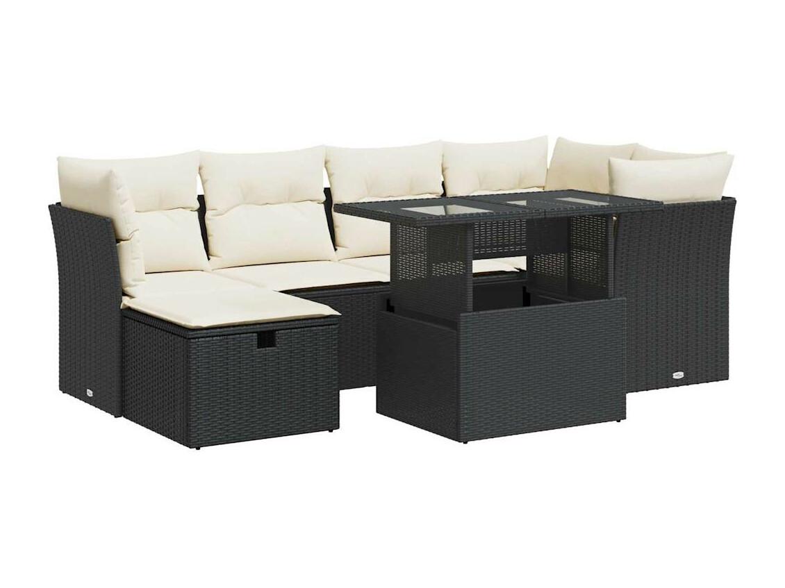 Salon de jardin 7 pièces avec coussins noir résine tressée