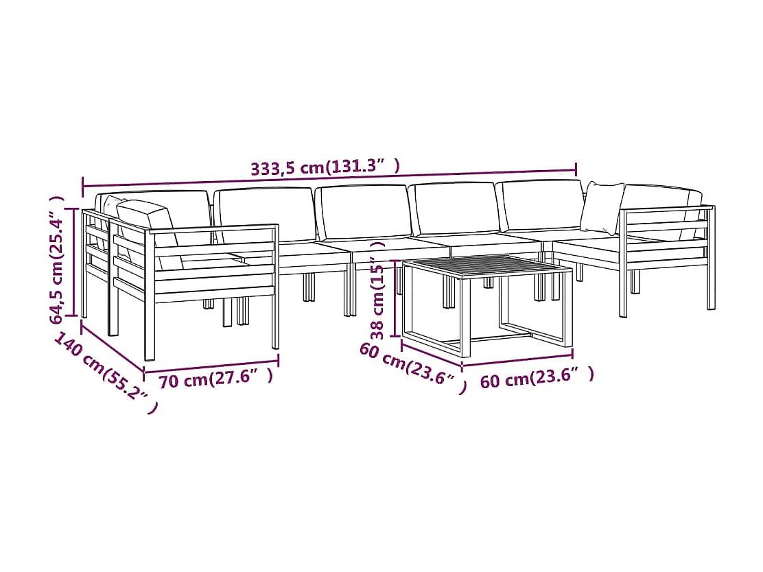 Salon de jardin 8 pcs avec coussins Aluminium Anthracite