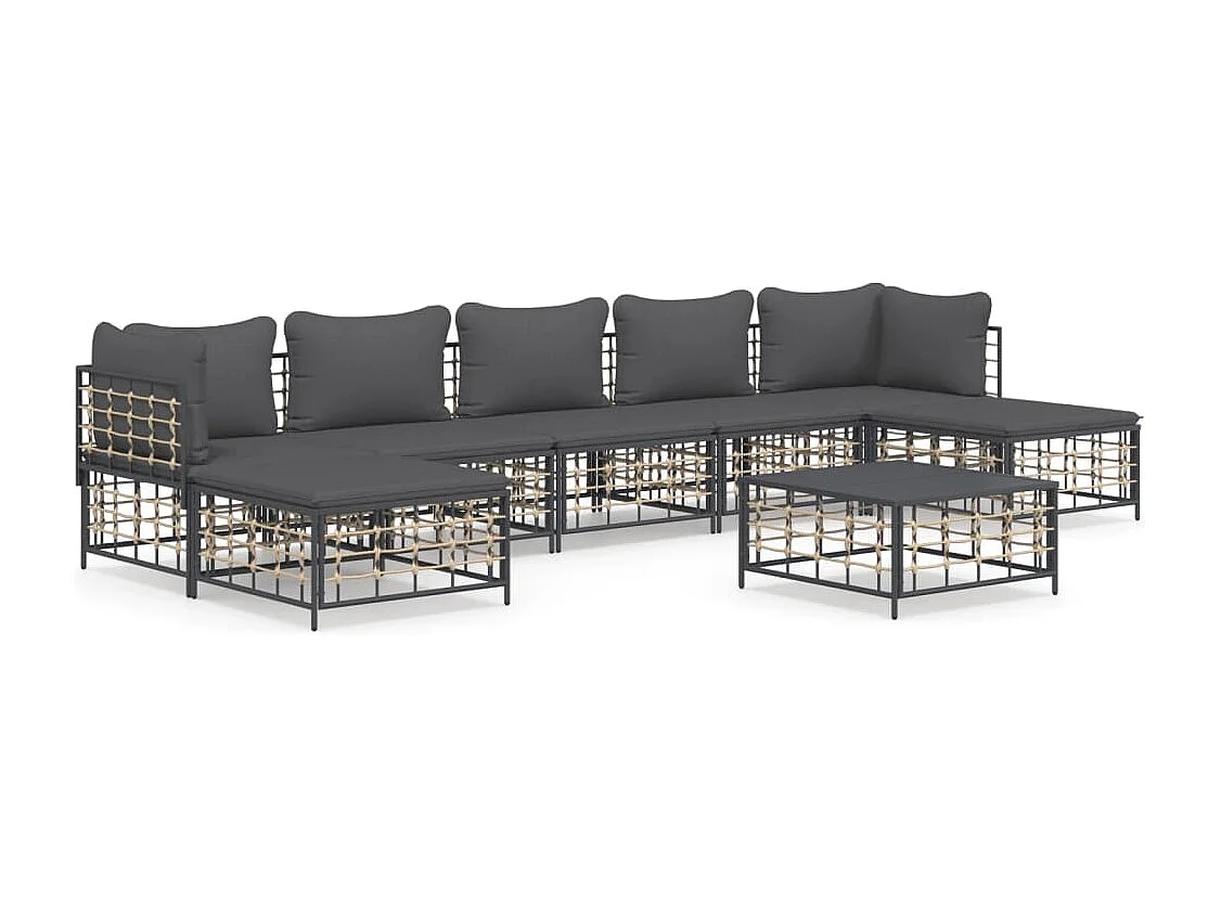 Salon de jardin 8 pcs avec coussins anthracite résine tressée