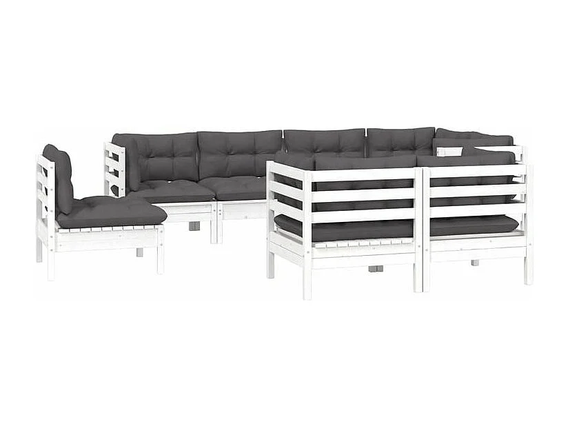 Salon de jardin 8 pcs avec coussins blanc bois de pin massif