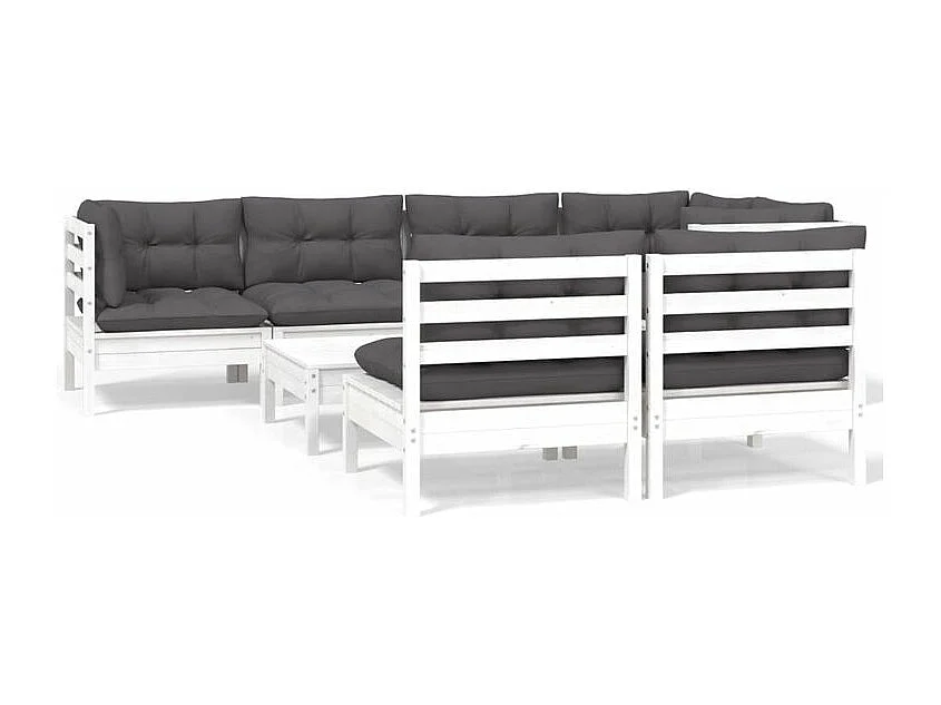 Salon de jardin 8 pcs avec coussins blanc bois de pin massif