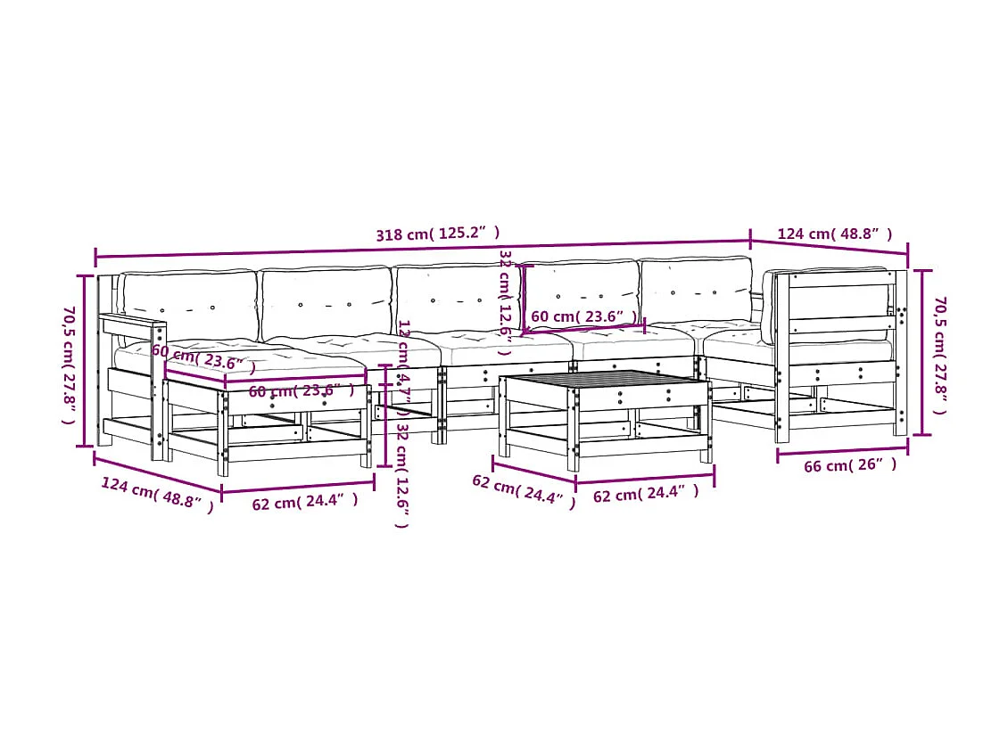 Salon de jardin 8 pcs avec coussins bois de pin imprégné