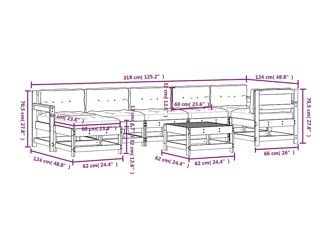 Salon de jardin 8 pcs avec coussins bois massif douglas