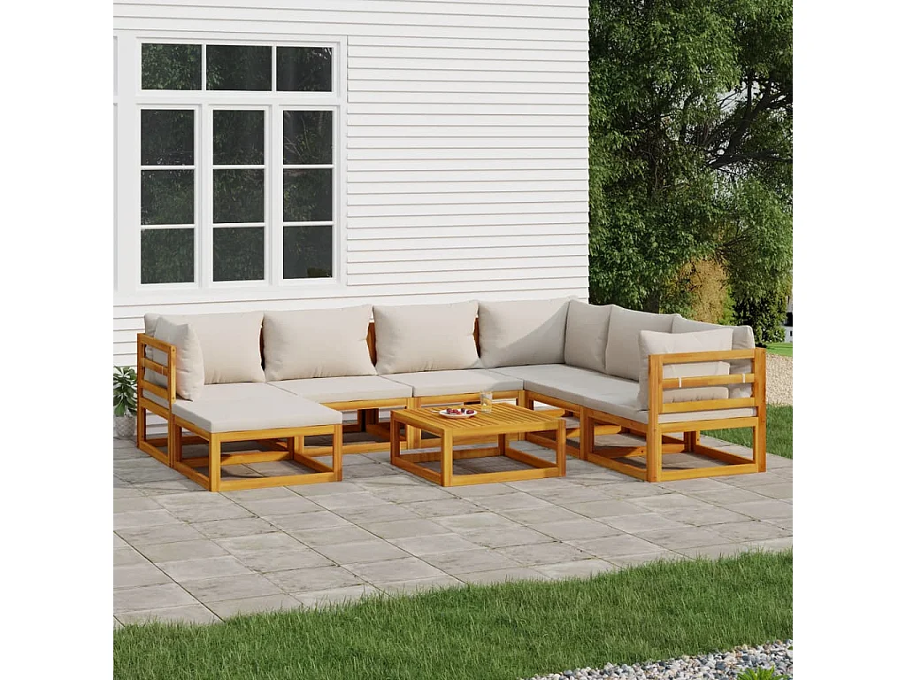 Salon de jardin 8 pcs avec coussins gris clair bois massif