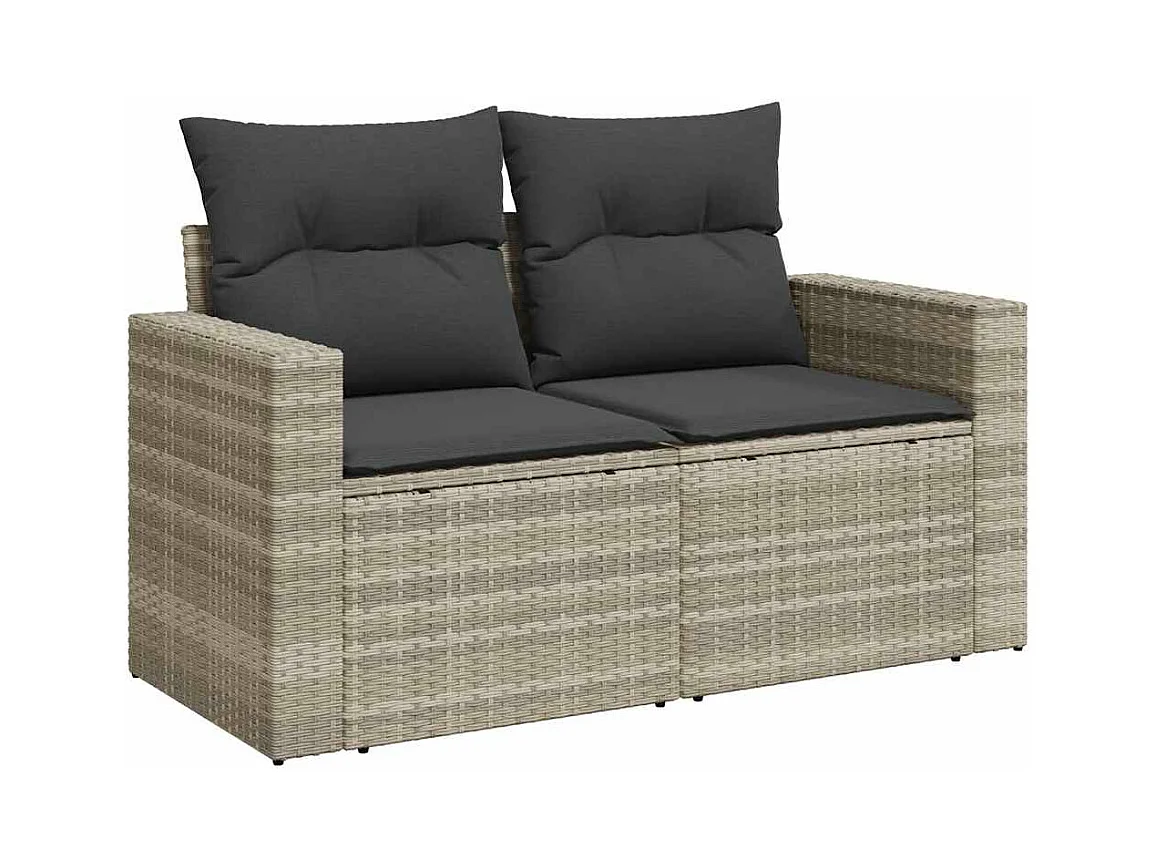 Salon de jardin 8 pcs avec coussins gris clair résine tressée