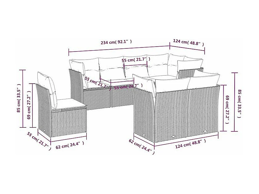 Salon de jardin 8 pcs avec coussins gris clair résine tressée