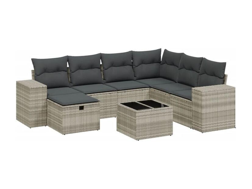 Salon de jardin 8 pcs avec coussins gris clair résine tressée