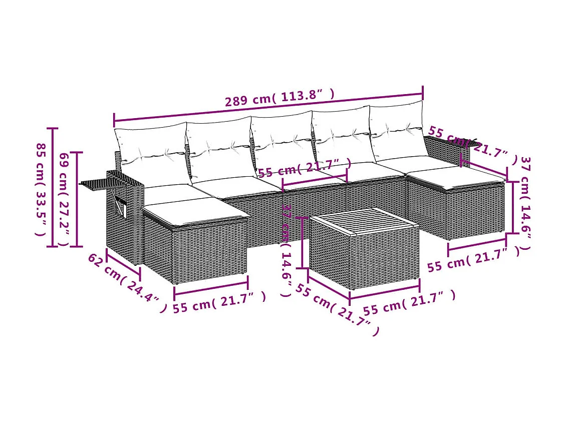 Salon de jardin 8 pcs avec coussins gris résine tressée