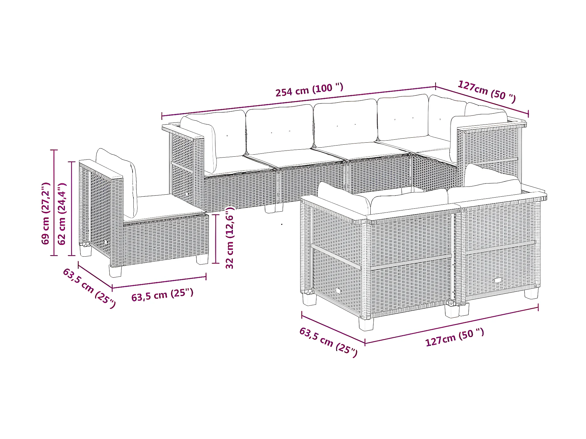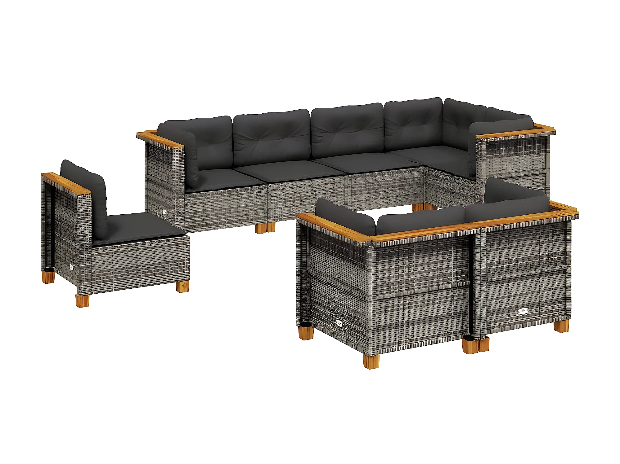 Salon de jardin 8 pcs avec coussins gris résine tressée