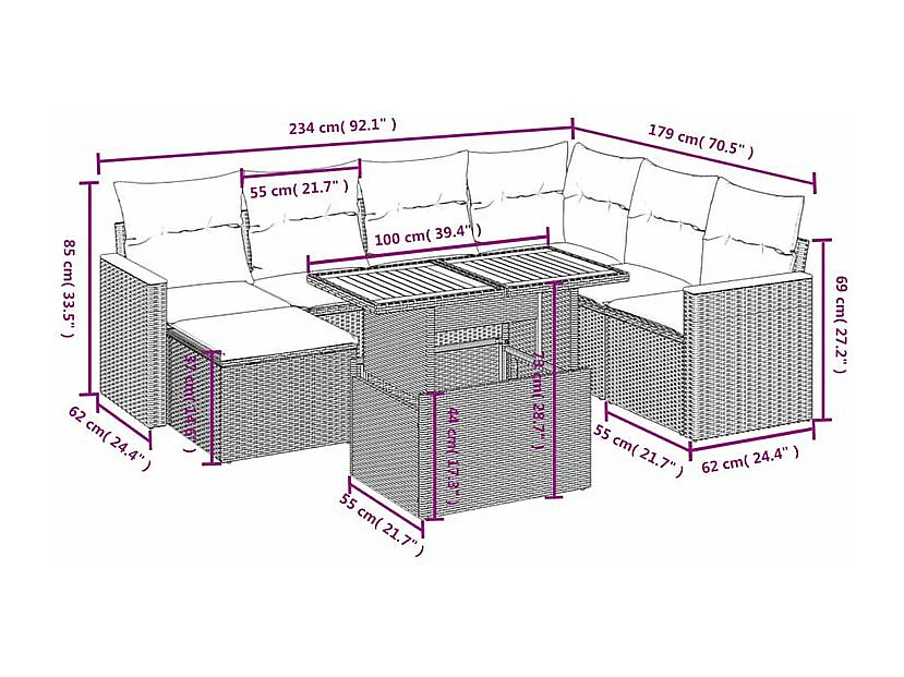 Salon de jardin 8 pcs avec coussins gris résine tressée