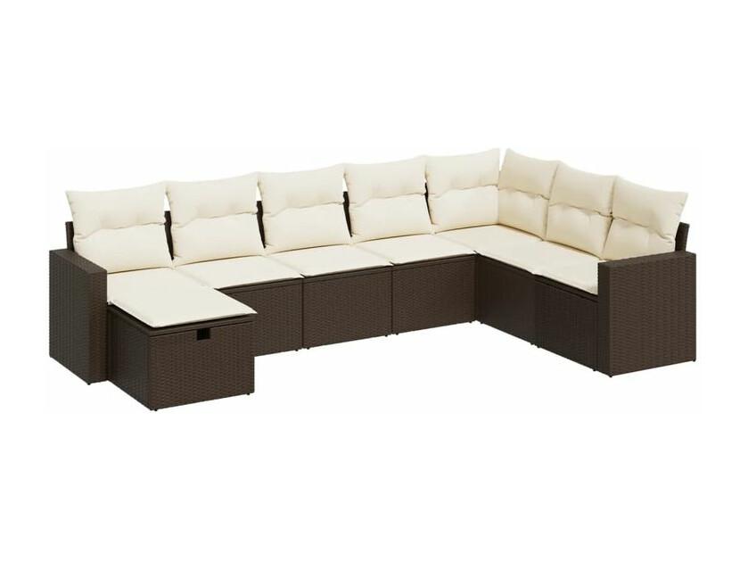 Salon de jardin 8 pcs avec coussins marron résine tressée