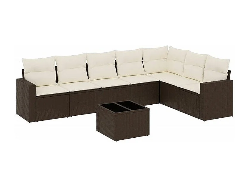 Salon de jardin 8 pcs avec coussins marron résine tressée