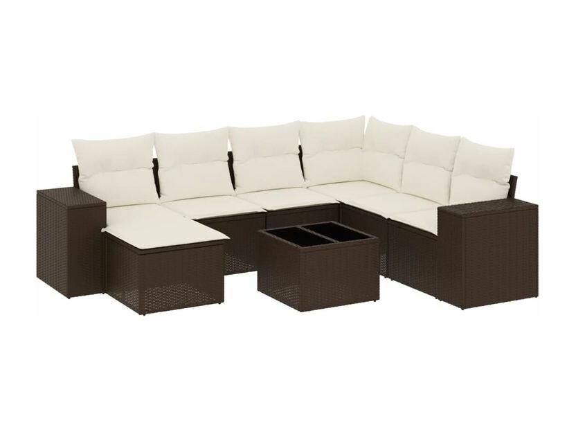 Salon de jardin 8 pcs avec coussins marron résine tressée