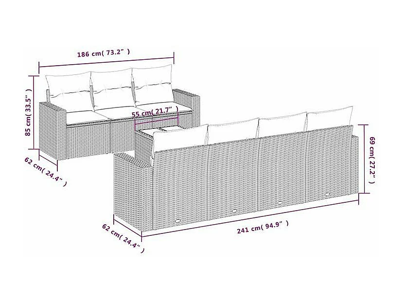 Salon de jardin 8 pcs avec coussins marron résine tressée