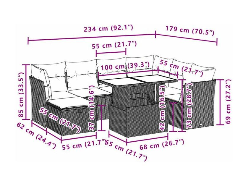 Salon de jardin 8 pcs avec coussins marron résine tressée