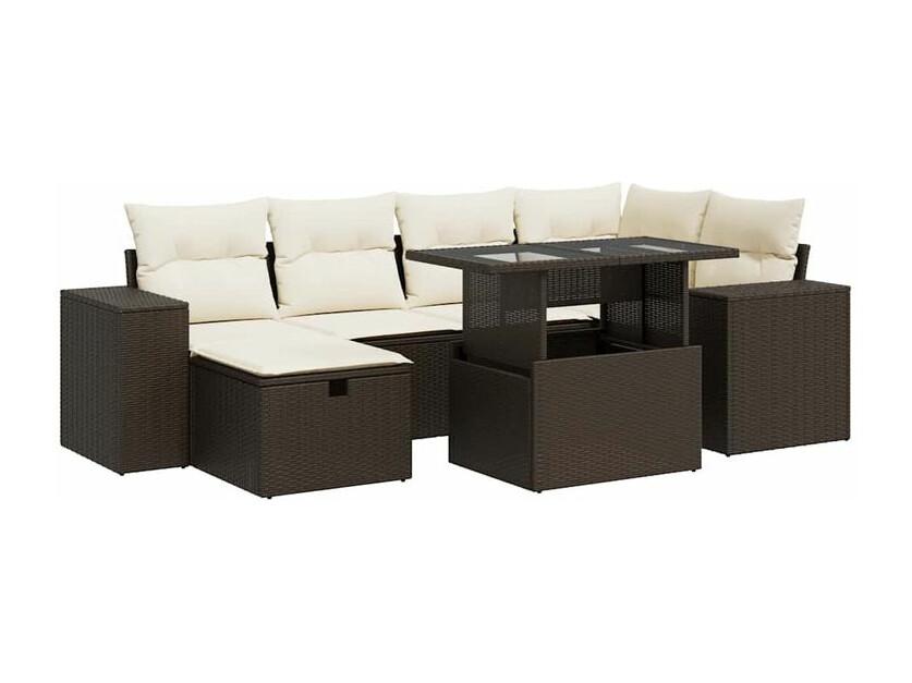 Salon de jardin 8 pcs avec coussins marron résine tressée