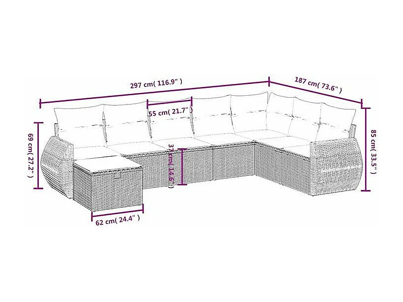 Salon de jardin 8 pcs avec coussins marron résine tressée