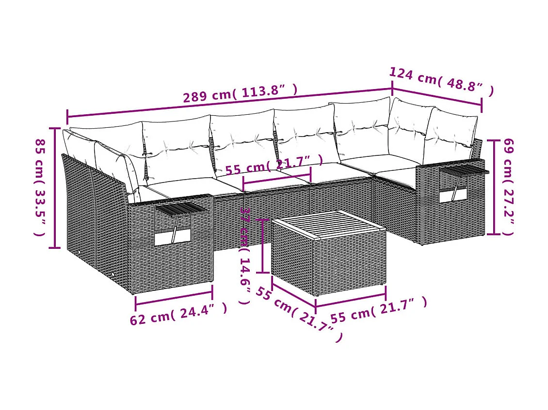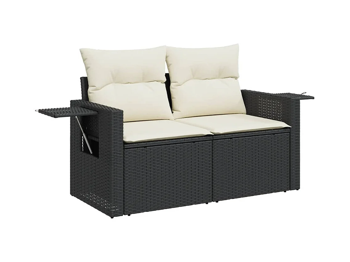 Salon de jardin 8 pcs avec coussins noir résine tressée