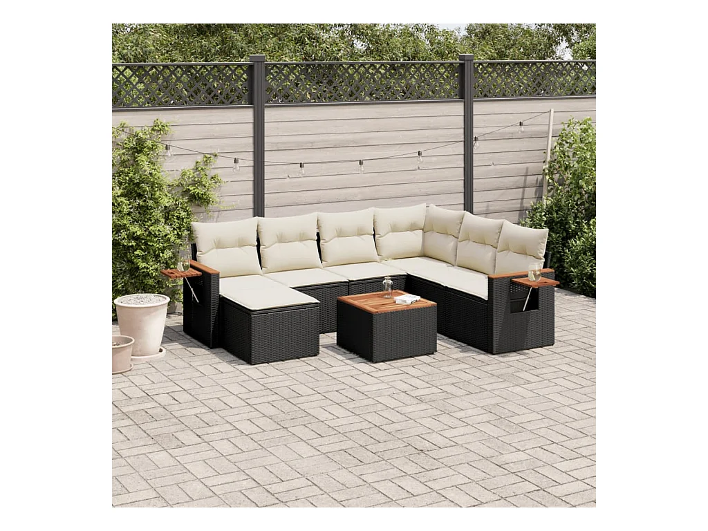 Salon de jardin 8 pcs avec coussins noir résine tressée