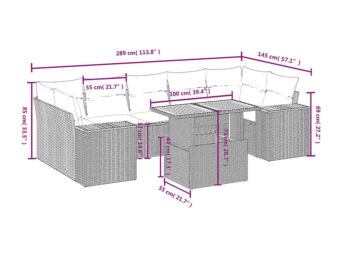 Salon de jardin 8 pcs avec coussins noir résine tressée