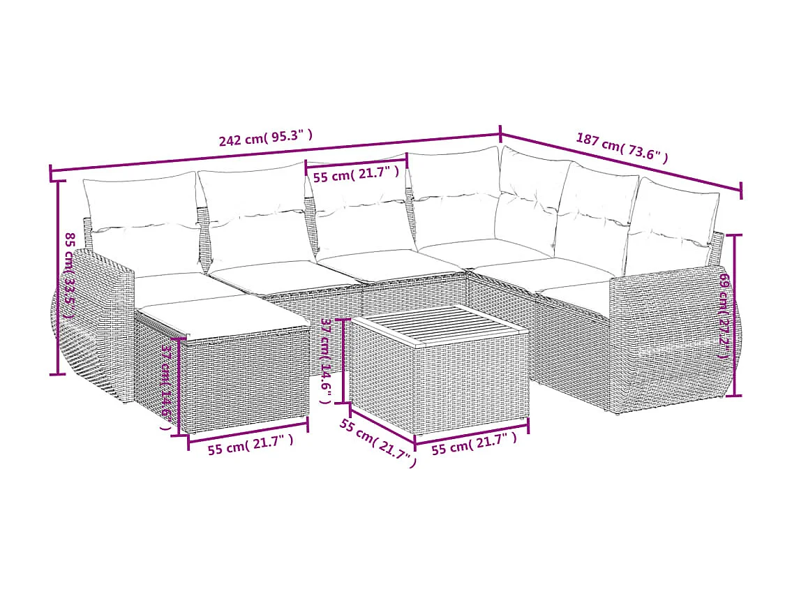 Salon de jardin 8 pcs avec coussins noir résine tressée