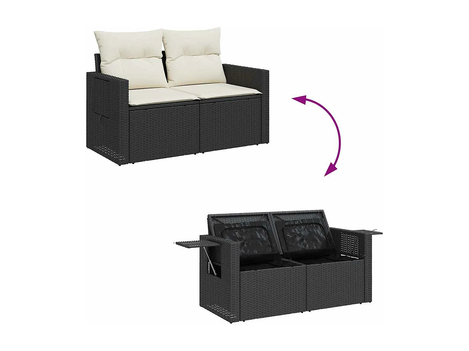 Salon de jardin 8 pcs avec coussins noir résine tressée