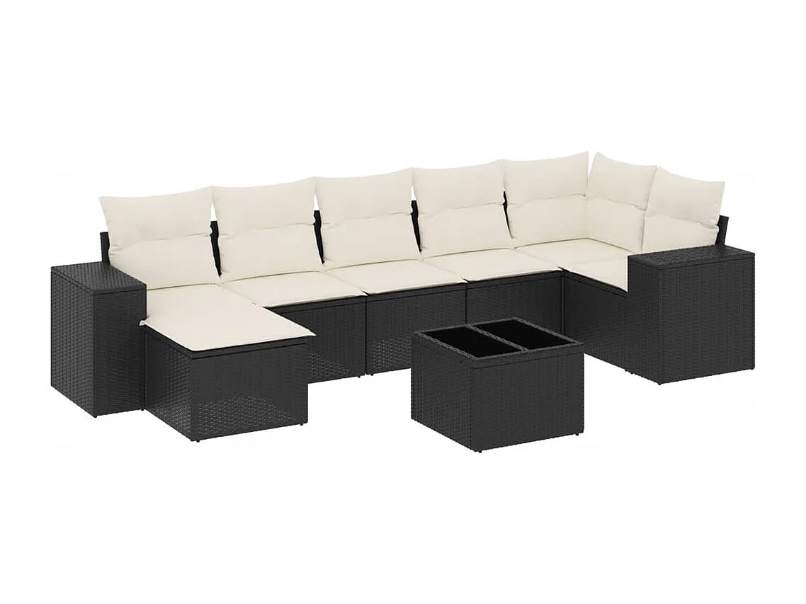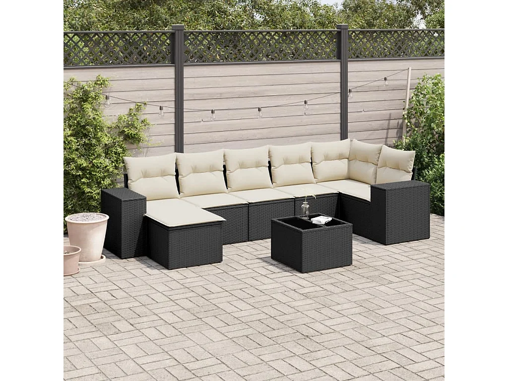 Salon de jardin 8 pcs avec coussins noir résine tressée