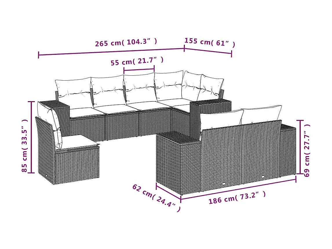 Salon de jardin 8 pcs avec coussins noir résine tressée