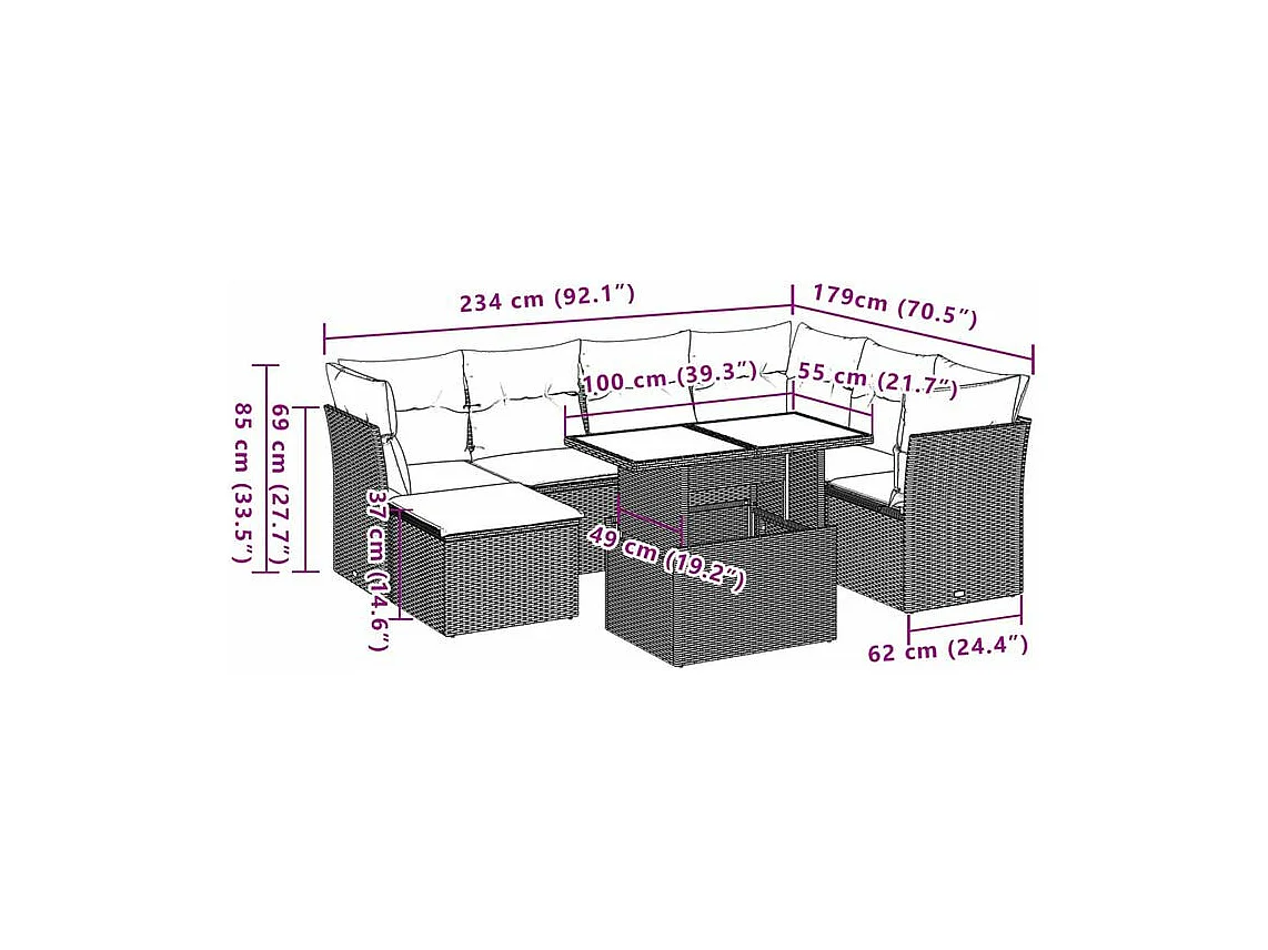 Salon de jardin 8 pcs avec coussins noir résine tressée