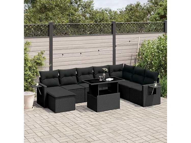 Salon de jardin 8 pcs avec coussins noir résine tressée