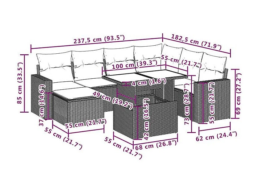 Salon de jardin 8 pcs avec coussins noir résine tressée
